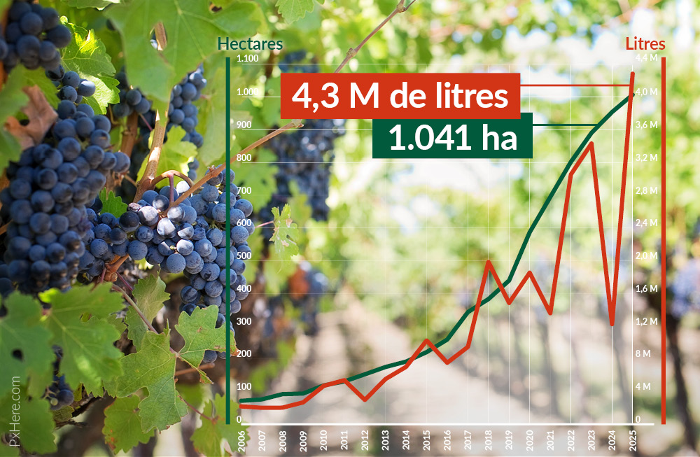 La tendance est similaire pour ce qui concerne la superficie cultivée : 1.040 hectares en 2025, contre 958 en 2024 et 891 en 2023.